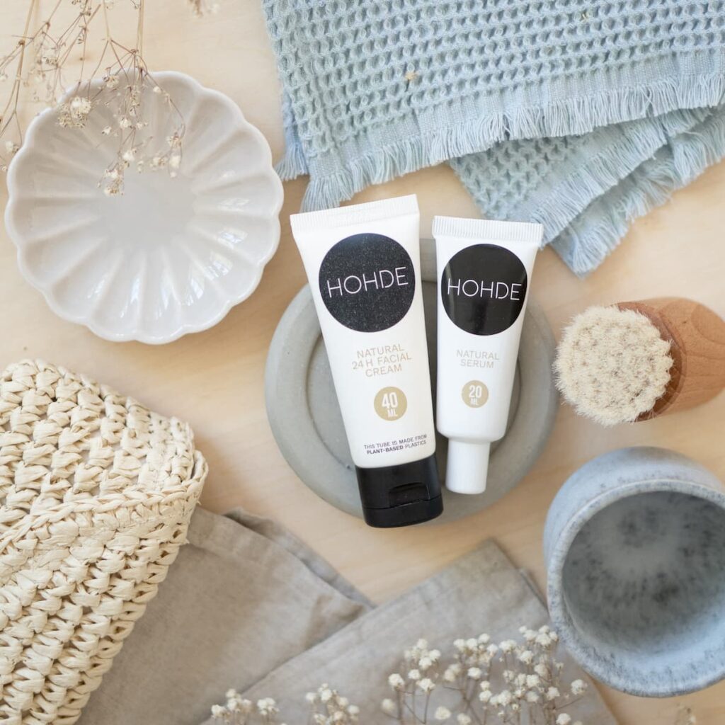 HOHDE Natural Serum virker udjævnende, balancerende og beroligende på den sensitive hud på halsen og i ansigtet. HOHDE 24H Ansigtscreme tilfører huden fugtighed og beskyttelse, som varer hele dagen og er egnet til alle typer problemhud. Den perfekte kombination til en frisk og sund hud.